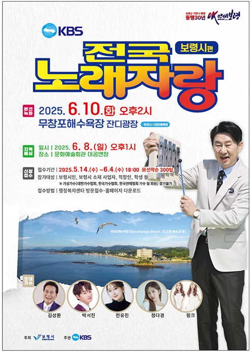 예심은 오는 6월8일 오후 1시, 보령문화예술회관 대공연장에서 열리며, 본선 녹화는 6월10일 오후 2시 무창포해수욕장에서 진행된다.
