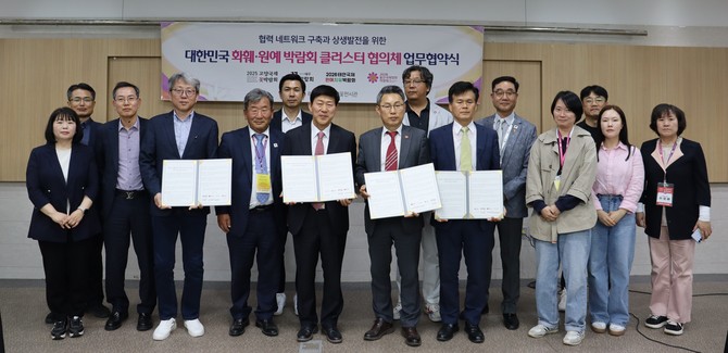 2026태안국제원예치유박람회, 2025고양국제꽃박람회, 제16회 대구꽃박람회, 2028울산국제정원박람회 등 4개 박람회 주관기관은 지난 8일 고양꽃전시관에서 '대한민국 대표 화훼·원예 행사 클러스터 협의체' 업무협약(MOU)을 체결하고 상호 협력을 약속했다.
