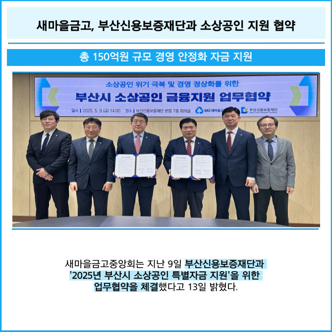 [프라임경제] 새마을금고중앙회는 지난 9일 부산신용보증재단과 '2025년 부산시 소상공인 특별자금 지원'을 위한 업무협약을 체결했다고 13일 밝혔다.