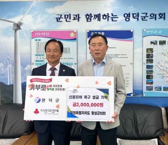 [프라임경제] 횡성군의회(의장 표한상)는 13일 초대형 산불로 큰 피해를 입은 영덕 군민들을 돕기 위해 영덕군의회(의장 김성호)를 통해 영덕군에 성금 200만원을 기탁했다.