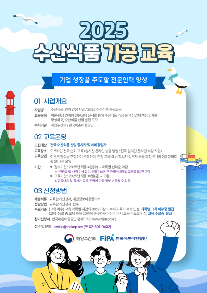 이번 교육은 '수산식품산업법'에 근거해 해양수산부로부터 위탁받아 추진되는 사업으로, 수산식품 가공 산업의 핵심 인재를 양성하고 산업 성장 기반을 마련하기 위한 목적을 갖고 있다.