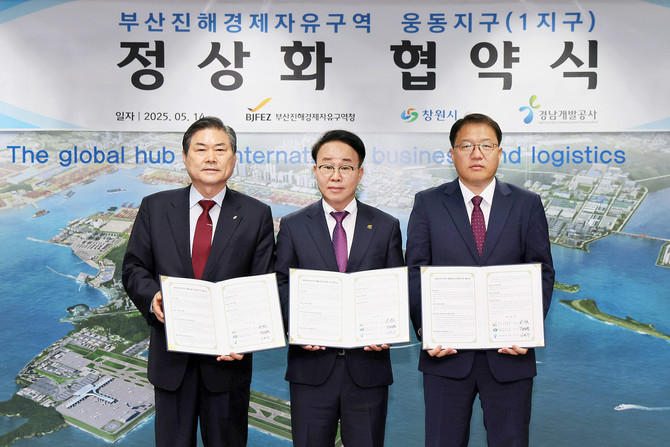[프라임경제] 창원시는 부산진해경제자유구역청·창원시·경남개발공사가 14일 부산‧진해경제자유구역청 5층 대회의실에서 웅동지구(1지구) 개발사업의 원활한 정상화를 위한 3자 협약을 체결했다.