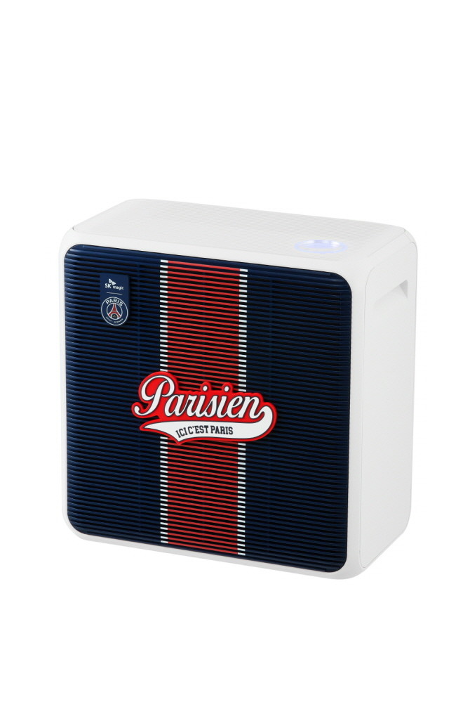이번 선보인 제품은 SK매직의 공기청정 기술력과 PSG의 브랜드 아이덴티티, 프리미엄 이미지를 접목한 콜라보레이션 모델로 콤팩트한 크기는 물론 감각적인 디자인으로 인테리어 소품으로도 손색이 없다. PSG의 연고지인 프랑스 파리의 감성을 반영해 트렌디하고 세련된 디자인을 완성했으며, 네이비와 레드 컬러의 조합으로 PSG의 역사와 정체성을 표현했다. 전면 디자인에는 PSG 엠블럼과 에펠탑이 그려진 브랜드 로고를 적용해 고급스러움을 더했다.