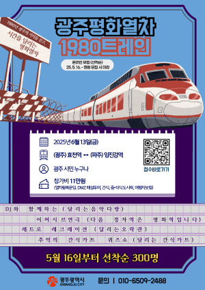 열차 안에서는 △1980년 5월을 주제로 한 음악다방 △추억의 간식 퀴즈 △연극 공연 등 다채로운 문화 콘텐츠가 펼쳐진다. 임진강역 도착 후에는 파주시 DMZ 일원에서 안보현장 견학을 통해 분단의 아픔을 마주하고 평화의 의미를 되새긴다.