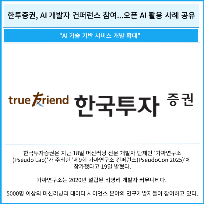 [카드] 한투증권, AI 개발자 컨퍼런스 참여...오픈 AI 활용 사례 공유