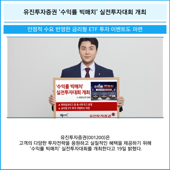[프라임경제] 유진투자증권(001200)은 고객의 다양한 투자전략을 응원하고 실질적인 혜택을 제공하기 위해 '수익률 빅매치' 실전투자대회를 개최한다고 19일 밝혔다.