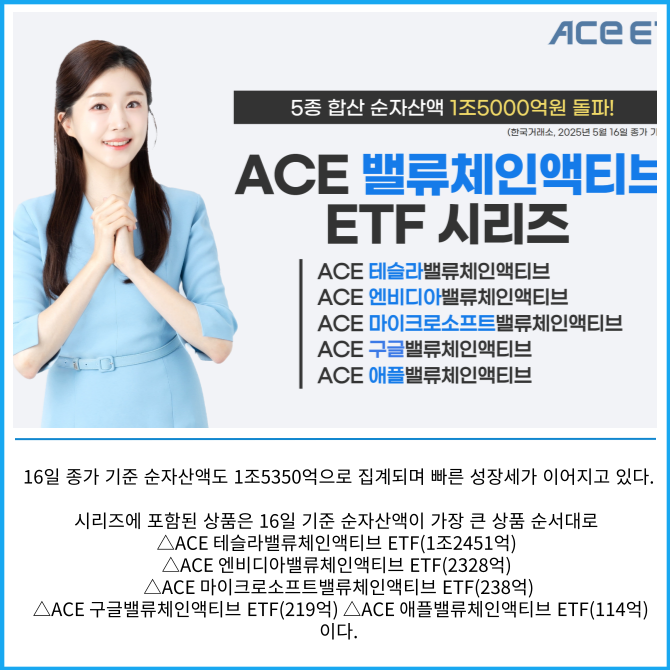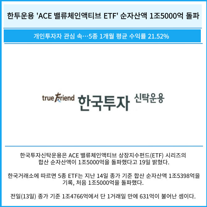 [카드] 한투운용 'ACE 밸류체인액티브 ETF' 순자산액 1조5000억 돌파