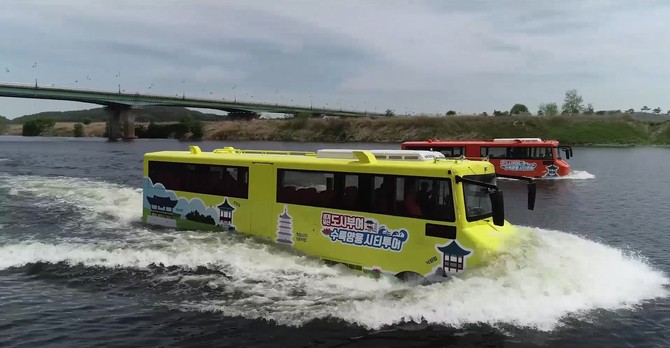 국내에서는 보기 드문 수륙양용버스는 백제문화단지에서 출발해 천정대 일대 도로를 달린 후, 백마강 레저파크를 통해 물 위로 진입하는 방식으로 운영된다. 육지에서 물길로, 도로에서 강으로 자연스럽게 이어지는 짜릿한 전환이 큰 매력이다.