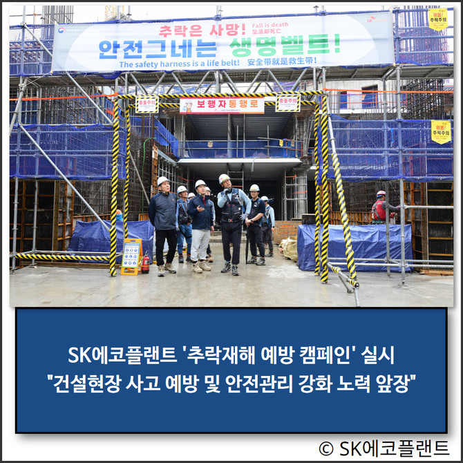 SK에코플랜트가 국토교통부 건설현장 추락사고 예방대책에 따라 '건설현장 추락재해 예방과 안전문화 확산을 위한 캠페인'을 5월 한 달간 진행하고 있다.