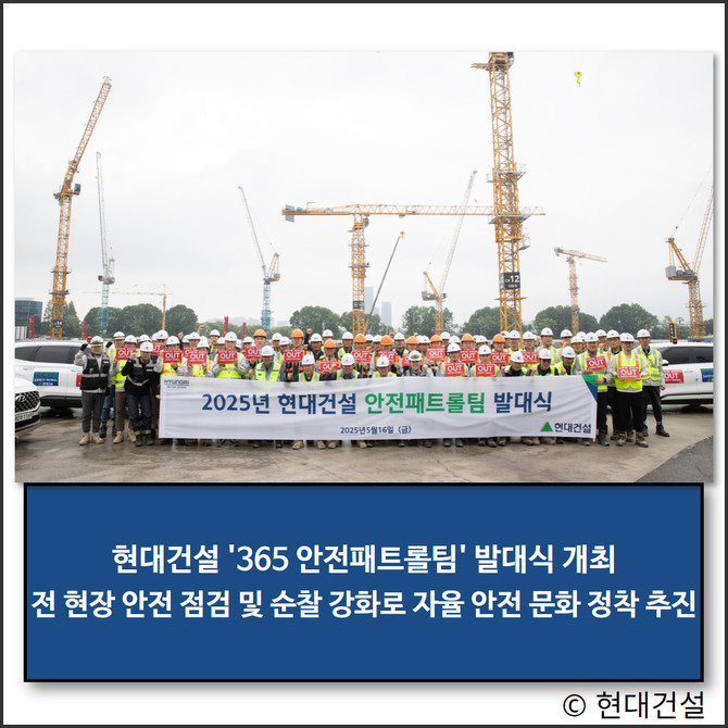 지난 16일 현대건설은 '디에이치 클래스트' 현장에서 '365 안전패트롤팀'의 공식 출범을 알리는 발대식을 개최하고, 본격적인 활동을 시작했다. 이날 발대식에는 황준하 현대건설 CSO(안전보건최고관리자) 본부장 등 주요 임직원과 현장 관계자들이 참석해 운영 방침과 목표를 공유하고, 현장 안전의식 제고를 위한 결의를 다졌다.