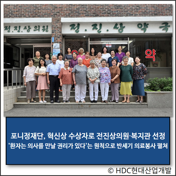 HDC현대산업개발(이하 HDC현산·294870)의 포니정재단이 제19회 '포니정 혁신상' 수상자로 지역사회 의료복지사업 시설인 전진상의원·복지관을 선정했다.