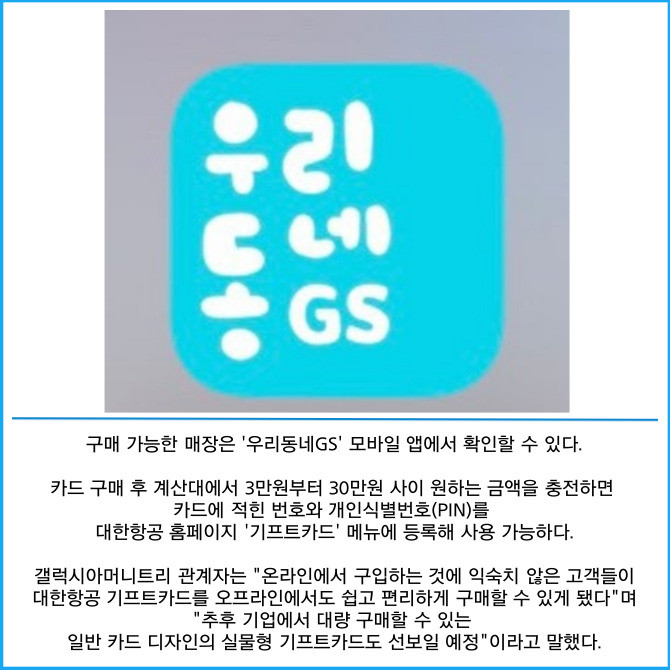 [프라임경제] 국내 모바일상품권 발행 1위 기업 갤럭시아머니트리(094480)는 대한항공(003490)과 협력해 실물 카드인 '대한항공 기프트카드'를 20일 출시했다고 밝혔다.