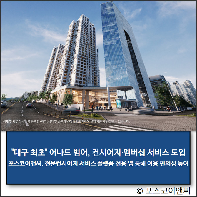 포스코이앤씨 대구 수성구 범어동 1번지(구 대구MBC 부지)를 개발해 선보이는 '어나드 범어'에 에스엘플랫폼(SLP)과 함께 대구 최초로 컨시어지 서비스와 입주민 전용 멤버십 서비스를 도입한다.