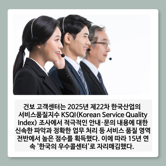 [카드] 건보 고객센터, 15년 연속 '우수 콜센터' 선정