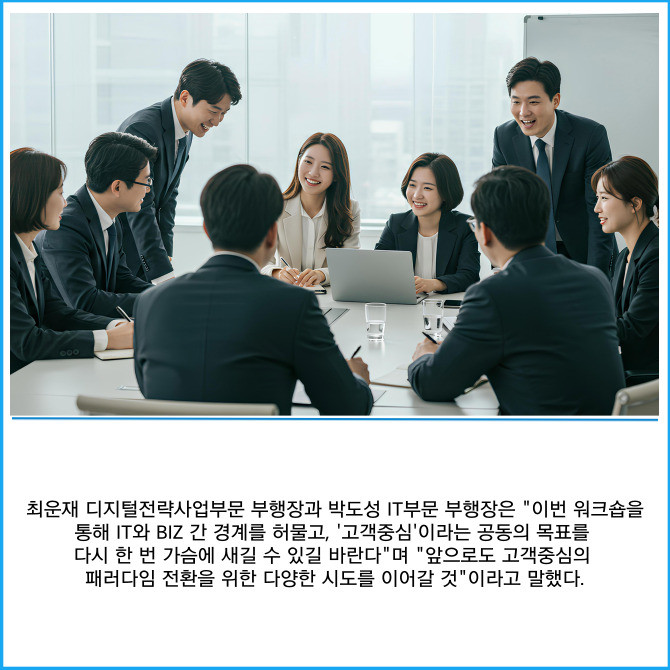 [프라임경제] NH농협은행은 지난 23일 기술·개발(IT)부문과 기획(BIZ)부문 간 상호 이해와 협업 강화를 위한 'IT×BIZ 원팀 워크숍'을 개최했다고 26일 밝혔다.