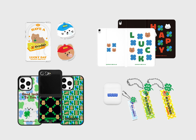 1차 라인업은 에폭시 케이스 6종, 더블 키링 3종, 맥세이프 카드 슬롯 3종, 아크릴 스마트톡 4종, 아이패드 커버 케이스 2종 등 전자기기 액세서리 18종이다. 롯데웰푸드가 지난 2월 '쥬시후레쉬', '스피아민트', '후레쉬민트'에 네잎클로버 모양을 적용해 선보인 '럭키 롯데껌 에디션'과 어프어프의 대표 캐릭터인 곰돌이 '코비', 고양이 '치치'가 함께 디자인됐다. 하반기 중으로는 보냉백과 런치백, 러그 등 다양한 리빙 상품이 구성된 2차 라인업을 추가로 선보일 예정이다.