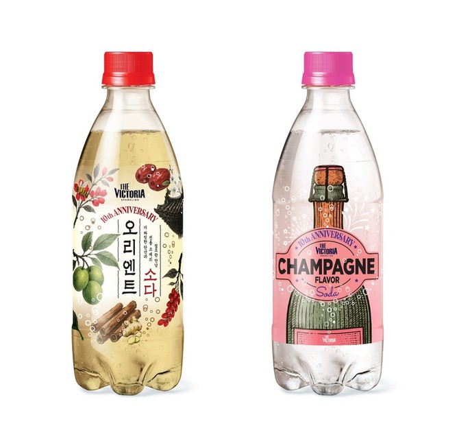 더 빅토리아 10주년 기념 한정판 제품은 '세상에 없던 새로운 맛'의 콘셉트로 제품을 출시하고 있다. 이번 신제품은 기존의 탄산수 시장에서 보기 어려운 '오리엔트 소다'와 '샴페인향 소다' 2종이다. 지난 4월 선보인 '토마토 바질 소다'에 이어 신선하고 독특한 맛을 더 빅토리아의 강력한 탄산감과 함께 담아내고자 기획됐다.