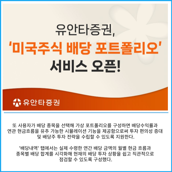 [카드] 유안타증권 '미국주식 배당 포트폴리오' 서비스 오픈