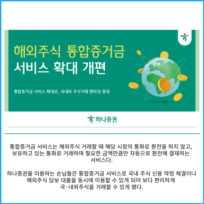 [카드] 하나증권, 해외주식 통합증거금 서비스 확대 개편