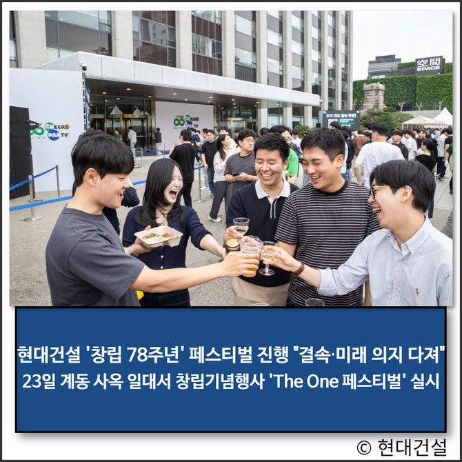 지난 23일 현대건설은 서울시 종로구 계동에 위치한 현대건설 본사 일대에서 창립 78주년을 기념하는 'The One 페스티벌'을 실시했다. 이번 행사는 형식적인 기념식을 벗어나 현대건설 일원이 직접 참여해 소속감과 자부심을 느낄 수 있는 행사로 진행한 것이 특징이다.