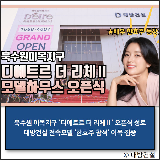 대방건설이 북수원 이목지구에 선보인 프리미엄 브랜드 단지 '디에트르 더 리체Ⅱ'의 모델하우스 오픈식이 성황리에 마무리됐다.