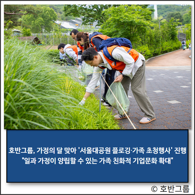 이날 호반그룹은 '플로깅 청소왕 대회', '동물과 가족사진 찍기' 등 임직원과 가족들이 즐길 수 있는 다양한 이벤트도 마련했다. 행사 후에는 온 가족이 함께 즐거운 추억을 만들 수 있도록 서울랜드 자유이용권과 도시락을 선물했다.