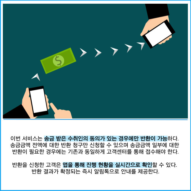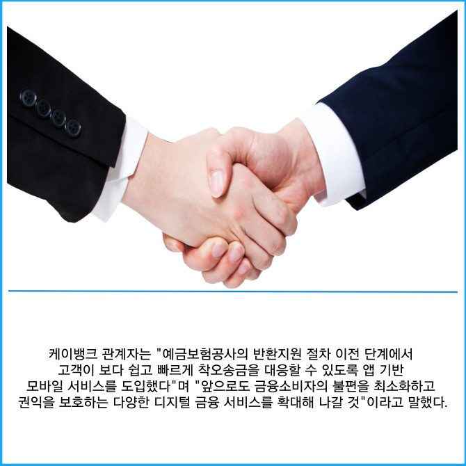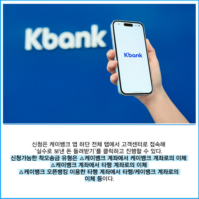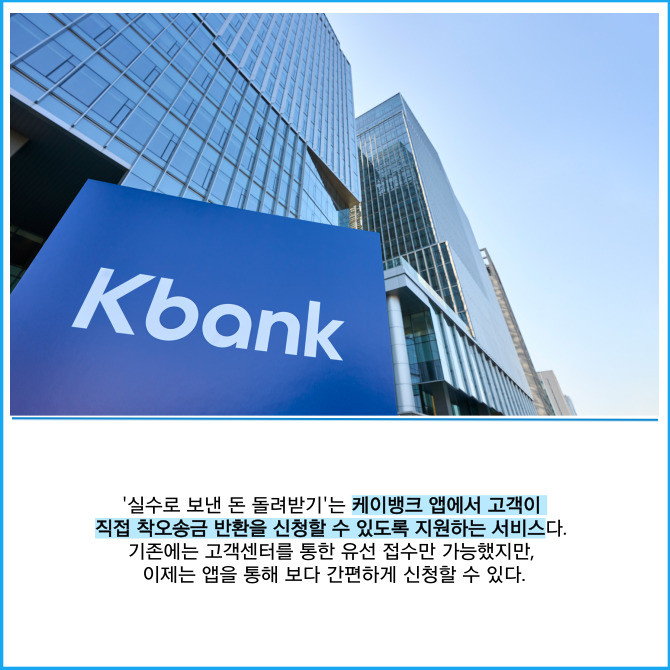 [프라임경제] 케이뱅크는 고객이 착오로 송금한 자금을 편리하게 되돌려 받을 수 있도록 앱에서 신청하는 '실수로 보낸 돈 돌려받기' 서비스를 도입했다고 27일 밝혔다.