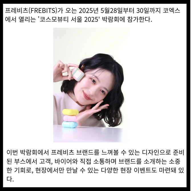 [프라임경제] 프레비츠(FREBITS)가 오는 2025년 5월28일부터 30일까지 코엑스에서 열리는 '코스모뷰티 서울 2025' 박람회에 참가한다.