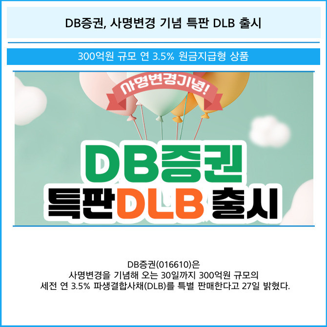 [카드] DB증권, 사명변경 기념 특판 DLB 출시