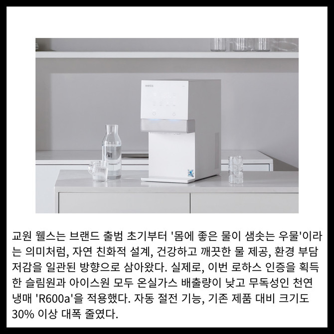 [카드] 교원 웰스, 슬림원·아이스원정수기 친환경 인증 로하스 획득