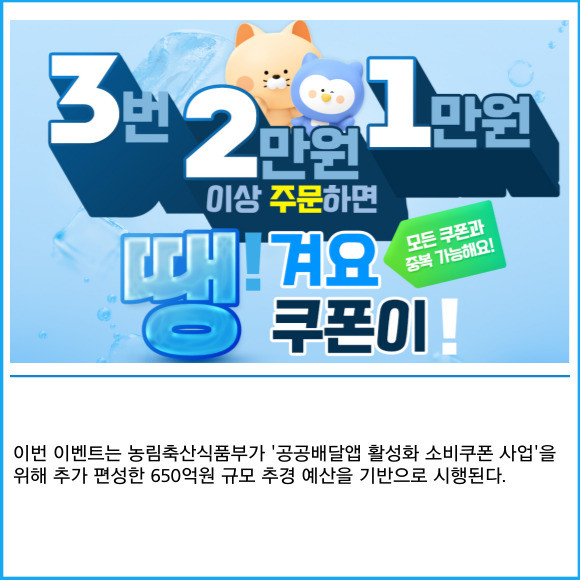 [프라임경제] 신한은행은 오는 10일부터 12월31일까지 배달애플리케이션(앱) '땡겨요'에서 최대 7만원 할인 혜택을 제공하는 '3·2·1 땡!' 이벤트를 진행한다고 9일 밝혔다.