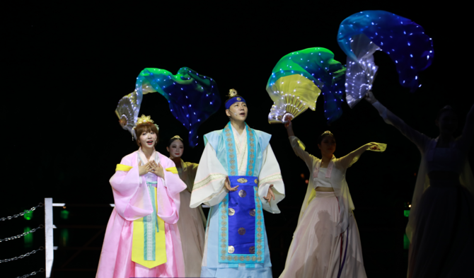 이 공연은 백제 서동과 신라 선화공주의 사랑 이야기를 바탕으로, 프로젝션 맵핑, 레이저, 포그, 폭죽 등 첨단 무대 연출을 접목한 환상적인 야외 퍼포먼스로 관람객에게 깊은 인상을 남길 예정이다.