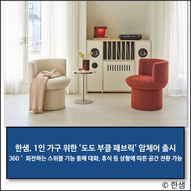 한샘 관계자는 "빠르게 증가 중인 1인 가구에게 더욱 다양한 선택지를 제공하기 위해 1인용 암체어를 선보이게 됐다"며 "부담 없는 크기와 가격대를 갖춘 이번 신제품을 통해 공간에 트렌디한 포인트를 더해 보시기를 바란다"고 말했다.