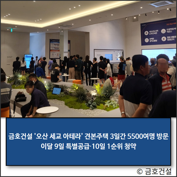 금호건설(002990)이 지난 6일 개관한 '오산 세교 아테라' 견본주택에 3일간 약 5500명이 방문했다.