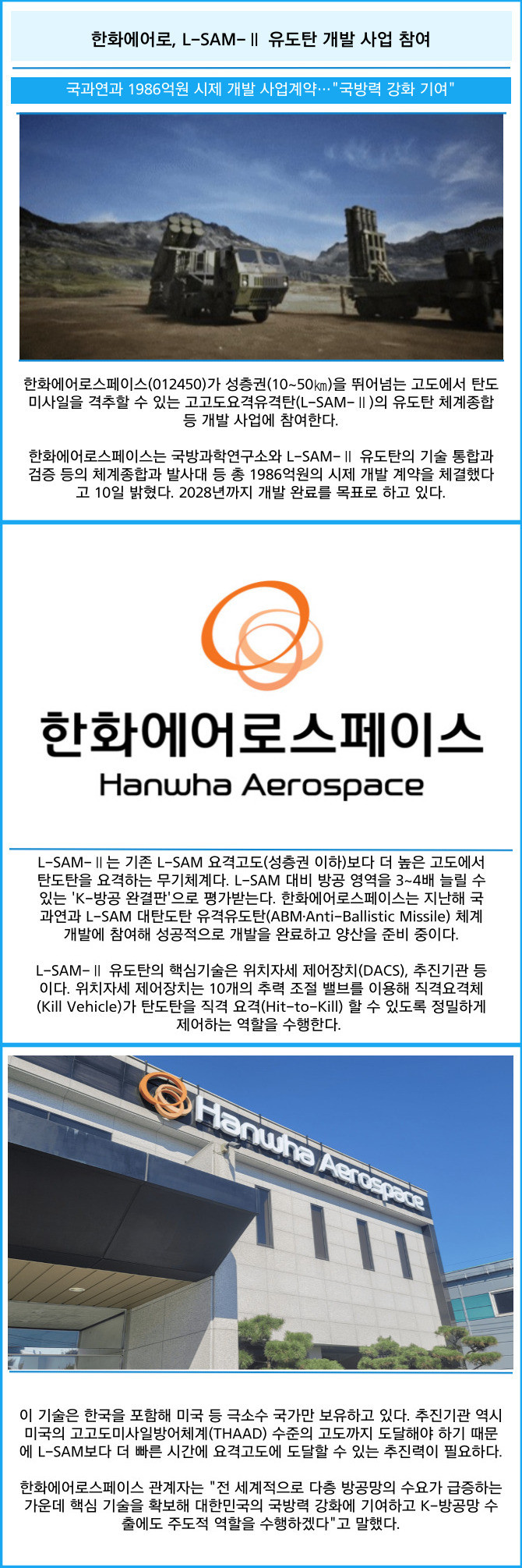 [카드] 한화에어로, L-SAM-Ⅱ 유도탄 개발 사업 참여