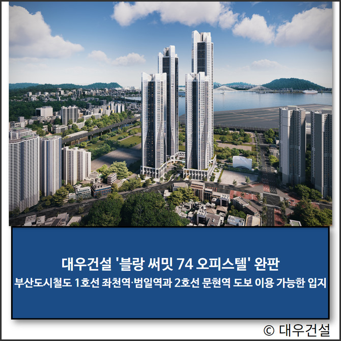 대우건설이 부산 동구 범일동 일원에 선보이는 '블랑 써밋 74' 오피스텔이 지난 7일부로 전 실 완판됐다.