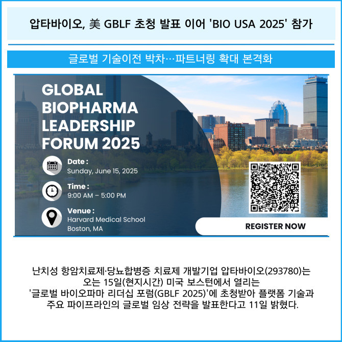 [카드] 압타바이오, 美 GBLF 초청 발표 이어 'BIO USA 2025' 참가