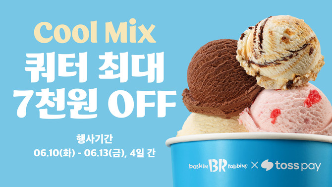 배스킨라빈스는 오는 13일까지 매장에서 아이스크림 쿼터 사이즈를 구매하는 모든 고객에게 4000원 할인 혜택을 제공한다. 토스페이로 전액 간편 결제 시 3000원 추가 할인이 더해져, 최대 7000원까지 가격 혜택을 받을 수 있다.