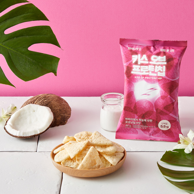 두 번째 상품은 S2엔터테인먼트 소속 4인조 걸그룹 '키스오브라이프'와 함께 개발한 '최애의 맛 EP.02 키스오브프로틴칩'이다. '키스오브라이프'는 지난 9일 독보적인 아티스트로서의 정체성과 매력을 담아낸 미니 4집 '224'를 발매하며 국내외 팬들의 호응을 이끌어내고 있다.