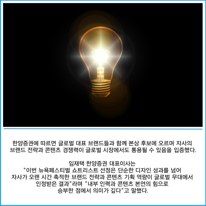 [카드] 한양증권 '세계 3대 광고제' 뉴욕페스티벌 본상 진출