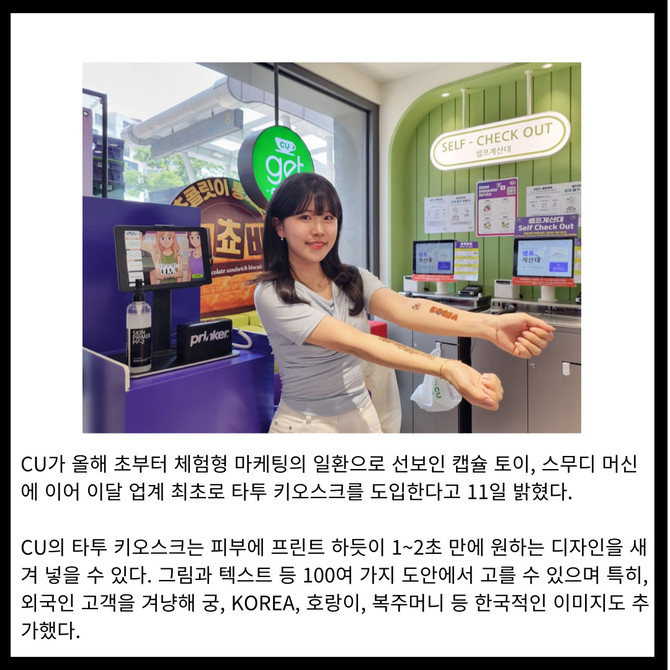 [카드] "편의점 이색 체험"...CU, 업계 최초 '타투 키오스크' 도입