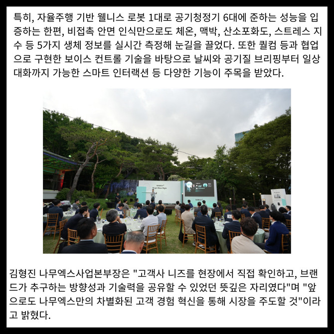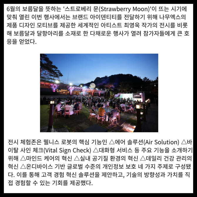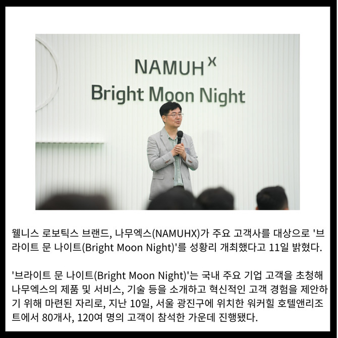[프라임경제] 웰니스 로보틱스 브랜드, 나무엑스(NAMUHX)가 주요 고객사를 대상으로 '브라이트 문 나이트(Bright Moon Night)'를 성황리 개최했다.