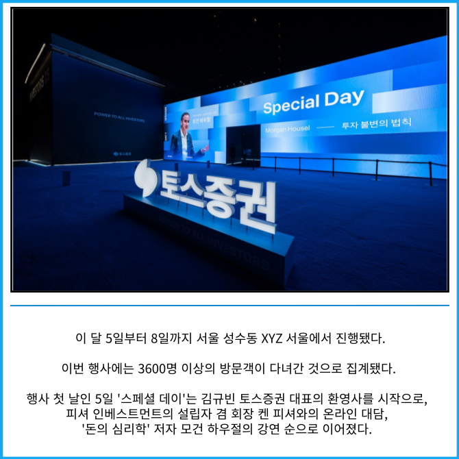 인베스터스 25는 '투자의 힘을 모두에게(Power to All Investors)'라는 토스증권의 비전에 따라, 초보부터 전문가까지 모든 투자자가 배우고 즐길 수 있도록 기획된 행사다. 이 달 5일부터 8일까지 서울 성수동 XYZ 서울에서 진행됐다.