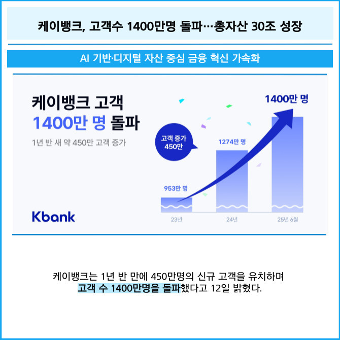 [카드] 케이뱅크, 고객수 1400만명 돌파…총자산 30조 성장