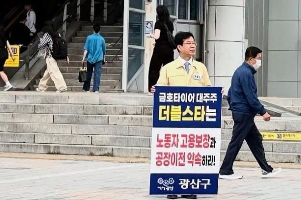 여기에 박병규 광주 광산구청장도 금호타이어 사태 해결을 위한 현장 중심의 강경 행보를 이어가고 있다. 박 구청장은 연일 출근길 1인 시위에 나서며, 금호타이어 대주주 더블스타의 책임 있는 대응을 촉구하고 있다.