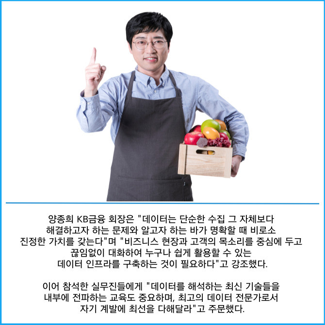 [프라임경제] KB금융그룹(105560)은 지난 11일 여의도 국민은행 신관에서 지주 및 주요 계열사의 데이터·AI 분야 임직원 100여명을 대상으로 '고객별 맞춤 금융서비스'를 고도화하기 위한 '그룹 데이터 혁신 세미나'를 개최했다고 12일 밝혔다.