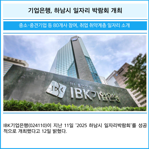[프라임경제] IBK기업은행(024110)이 지난 11일 '2025 하남시 일자리박람회'를 성공적으로 개최했다고 12일 밝혔다.