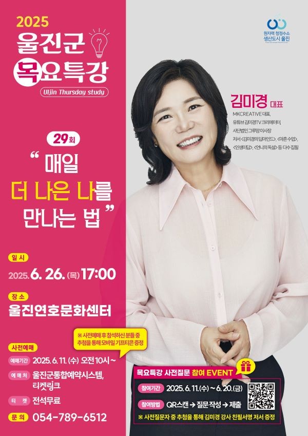 울진군은 오는 26일 울진연호문화센터에서 제29회 목요특강을 개최한다.