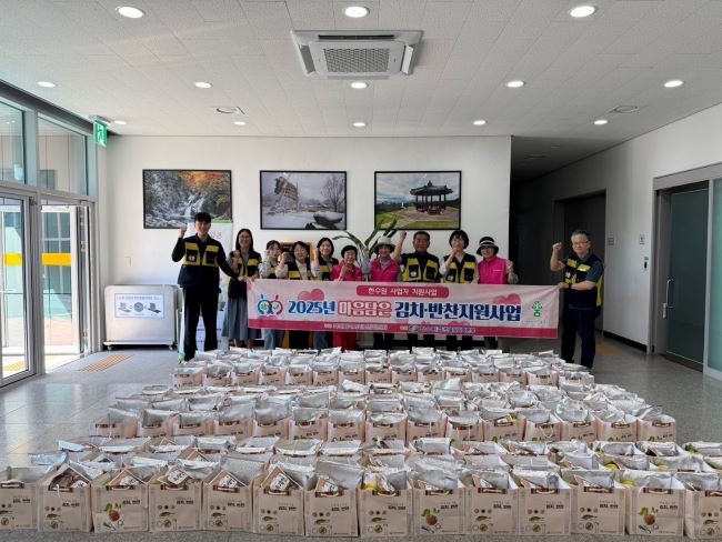 이번 '마음담은 김치·반찬사업'은 여성자원봉사회(회장 김은자)에서 육개장, 삼겹살, 깻잎, 과일 등 푸짐하고 영양 가득한 반찬을 준비하고 복지이장이 대상자의 안부를 확인하며 전달했다.