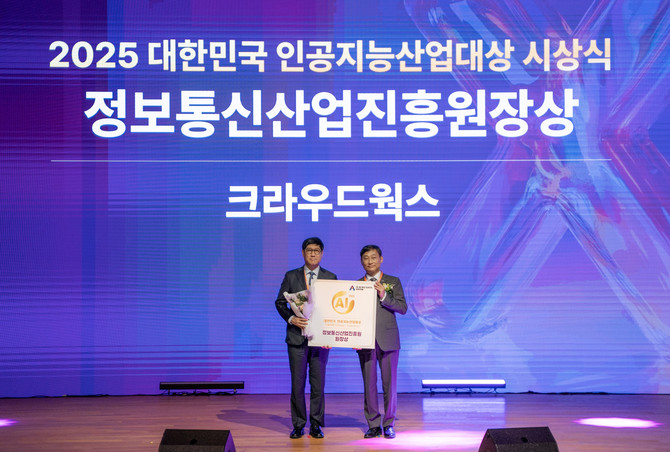 [프라임경제] 인공지능(AI) 테크 기업 크라우드웍스(355390)는 12일 서울 코엑스에서 열린 '2025 대한민국 인공지능산업대상'에서 Cross-industry 부문 정보통신산업진흥원(NIPA) 원장상을 수상했다고 13일 밝혔다.